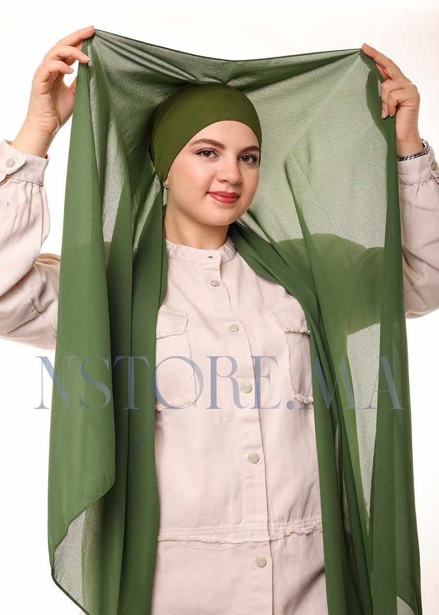 هذا الشال هو الخيار المثالي لكل سيدة تبحث عن قطعة تجمع بين الراحة، الأناقة، والتصميم العملي. يأتي شال الكريب الفاخر بلون أخضر عسكري جذاب، مما يجعله مناسبًا لمختلف المناسبات. يتميز بتصميمه الذي يربط من الخلف، مما يضيف راحة إضافية خاصة للنساء العاملات أو الطالبات، دون الحاجة إلى دبابيس أو مثبتات تقليدية.